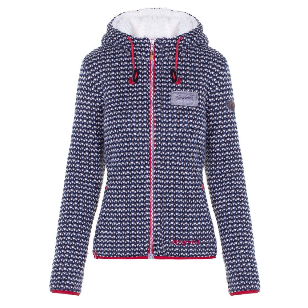 Stay warm in a casual way – the Münsterhöhe knitted fleece jacket from Almgwand shows how it's done. With its all-over pattern, it's not only attractive, but also impresses with its good thermal insulation thanks to the wool content. The hood with leather stoppers is lined with fluffy teddy plush for added warmth. Fully lined and made with a very stretchy fabric, the Münsterhöhe is particularly comfortable to wear. Two seamless zippered pockets and elastic edging at the hem and cuffs complete the sporty look. It features deer horn charms on the zippers and signature brand details. Made in Europe guarantees European standards in production – both in terms of environmental and sustainability standards and working conditions. Contains non-textile parts of animal origin.