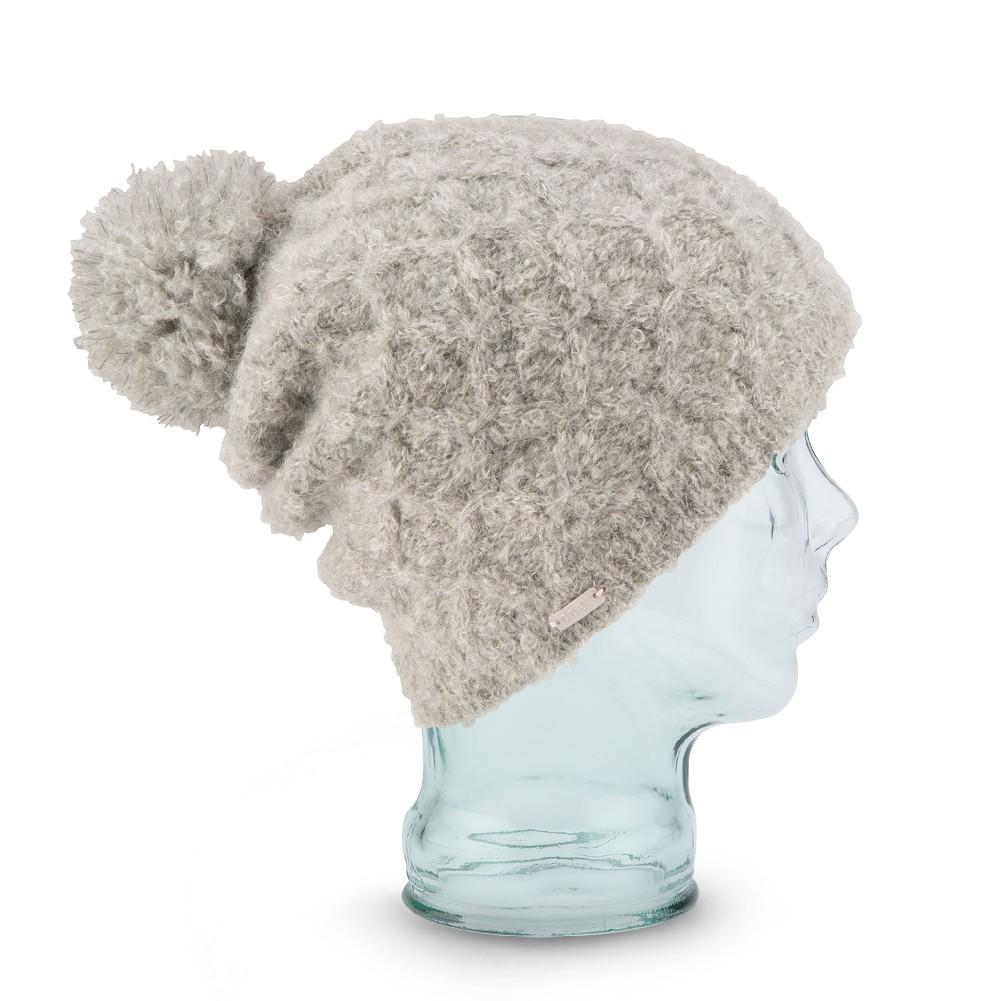 A warm and fuzzy addition for any wardrobe, the Sophie is knit in super soft boucle yarn. A textural cable pattern dances across the outside, ultra warm fleece lines the inside. Finished off with a fluffy pom pom and a brushed metal label at side.