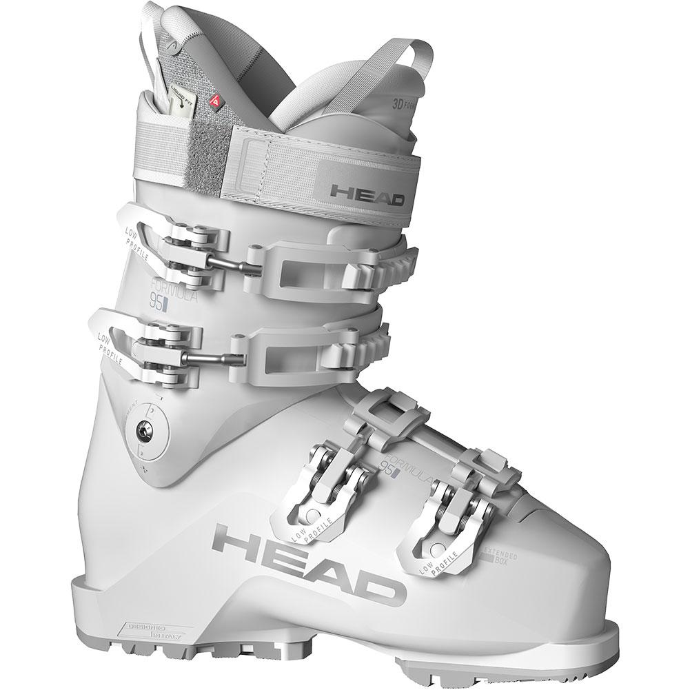 The new Formula 95 W delivers performance and all-day comfort thanks to technology proven from race boots combined with straightforward, customizable features. The Formula 95 W has an accommodating 100-mm last, a short cuff, an extended toe box for toe articulation, and a balanced stance that allows women to be more centered. The shell has an adjustable flex of 105 to 95, HEAD's Women's double adjustment cuff alignment and four micro-adjustable low profile buckles. The 3D Formula liner has heel and ankle supporting Liquid Fit and a 35mm Velcro strap for a snug, supportive wrap.
