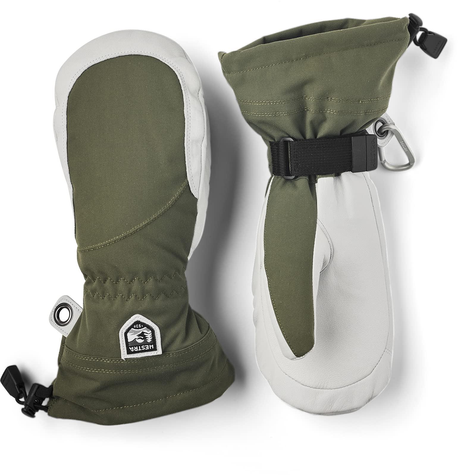 Hestra's Army Leather Heli Ski was originally created for ski guides in western Canada who needed a reliable and warm ski glove for long, cold days in the snow. This women's mitten has a narrower cut to fit women's narrower hands. Like all mitten versions, it provides plenty of space for the fingers, making it warmer than the equivalent glove. The outer glove is sewn in a hardwearing, weather-resistant combination of goatskin leather and 3-layer polyamide fabric. A range of smart functions come in handy when you can't head indoors to warm up that often. For example, the liner is easy to remove and dry, or replace with a thinner inner glove when you're being more active and hiking uphill. In powder snow, the long cuff with snowlock and wrist adjustment keep the snow on the outside and the warmth on the inside. A wrist strap reduces the risk of dropping a glove if you take it off to adjust your equipment or use your phone. And the included carabiner means you can hang the glove up with its opening facing downwards – practical while you're wearing just a thinner liner and want to avoid your gloves filling up with snow. A durable, flexible companion for skiers that spend a lot of time outdoors and who often find themselves far from the ski resort and its comforts. Also available in 3-finger and 5-finger models.