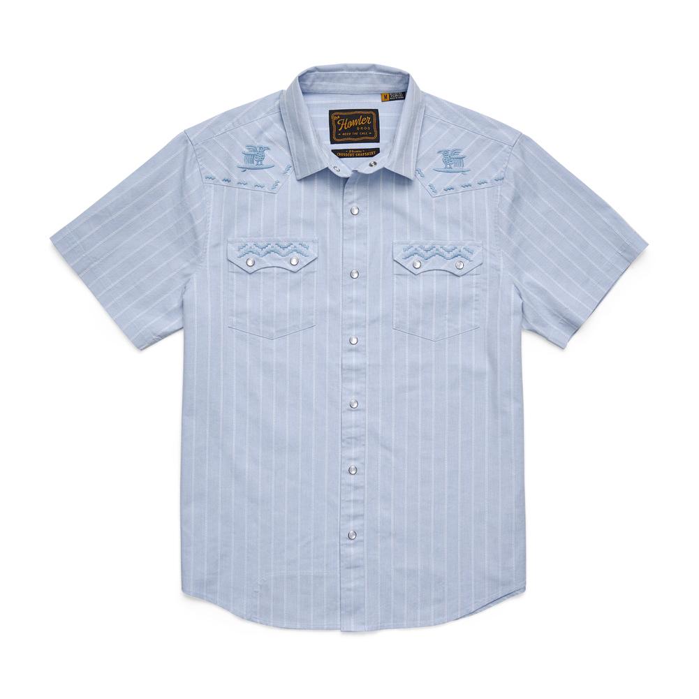 The Crosscut Deluxe is the most sought after item in our fall line year in and year out. Yes, the vintage inspired motif embroidery makes a big statement but so too do the bountiful pearl snaps, western yokes and robust stretch chambray. Collect these right along with your Gauchos for year-round Howler coverage.