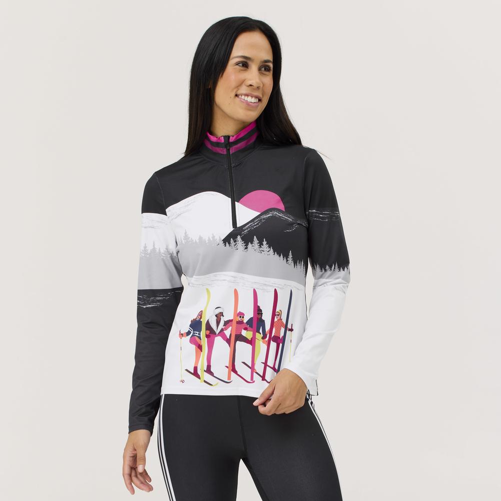 Built for bluebird days with your besties. With a flattering slim fit, breathable stretch, and cozy brushed feel, the Amiche Top offers premium comfort—and a playful print that captures the magic of mountain friendships. Engineered for movement and built with purpose, this stretchy fabric blends recycled polyester with spandex for soft compression, quick-drying comfort, and four-way flexibility. Moisture-wicking and UPF 50+ rated, it’s ready for everything from snow days to après.