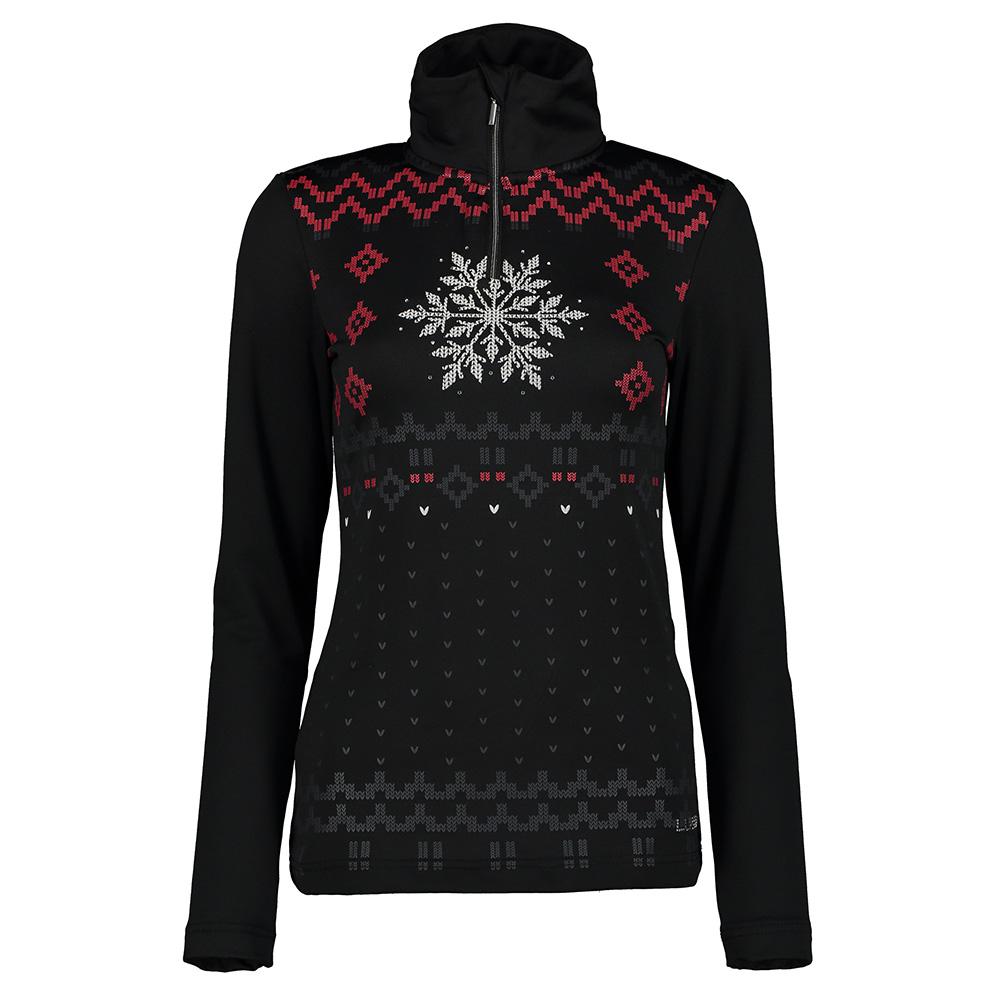 Women's elegant technical half-zip shirt with a wintery print. The Luhta Kaldoaivi shirt is great as a base layer for skiing and other winter sports or as part of a relaxed home outfit. The material is a stretchy technical knit that helps wick moisture away from the skin and keep you feeling comfortable.