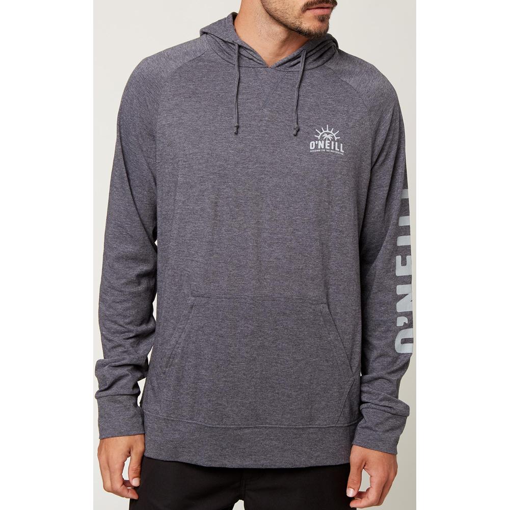 This pullover hoodie is perfect for surf camping or casual wear. Features include O'Neill Hyperdry moisture-wicking technology, UPF sun protection, and a relaxed, comfortable fit. This product is made with recycled materials.