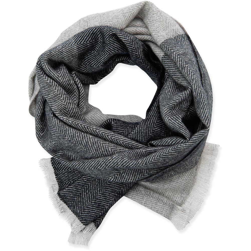 The women's Kin scarf is a supersoft medium-weight beauty that's sure to bring warmth and comfort to cool winter days. A colorblocked herringbone pattern flows from one end to the other, accented by frayed edges. Its versatile look means it's got you covered today, tomorrow and the next day since no two wraps ever look exactly the same.