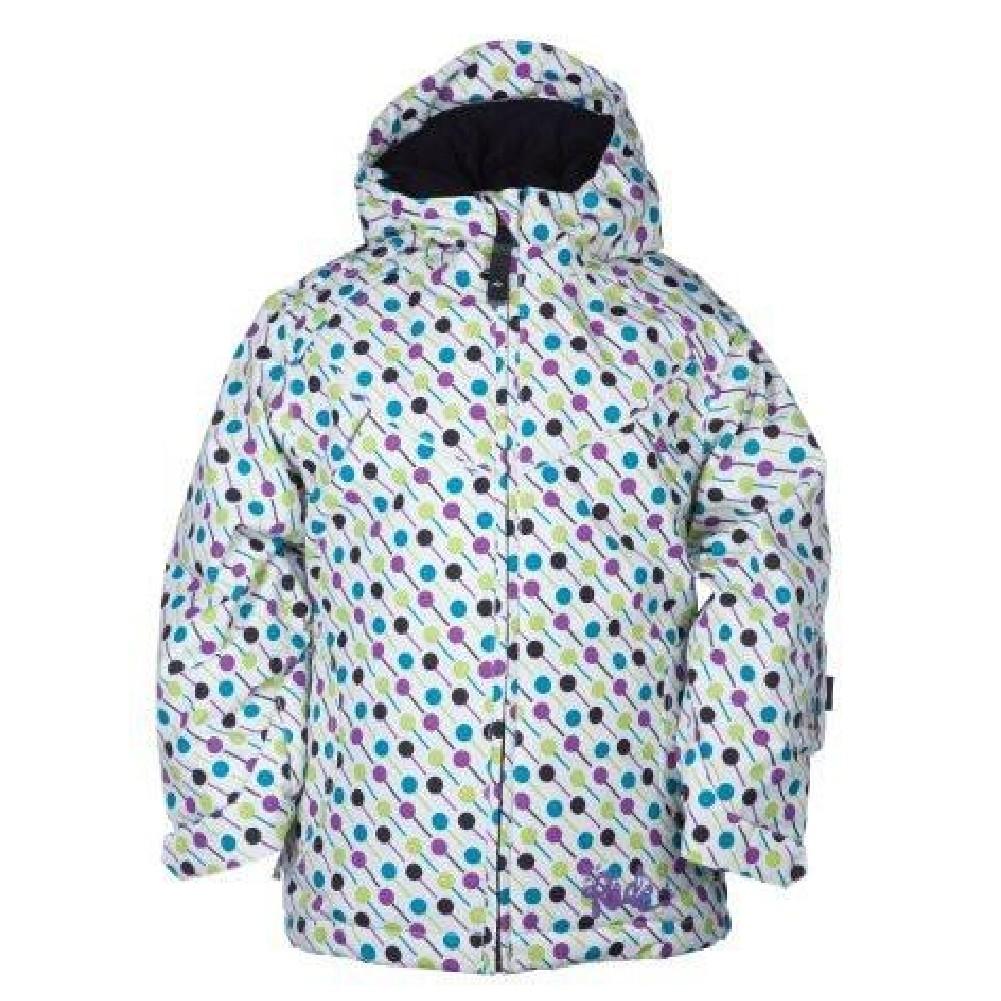 Built to keep your little one cozy and dry, the Ace youth snowboard jacket features 150g Poly Insulation, 3k/2k waterproof breathable rating with DWR to keep them out on the slopes up until last chair! FEATURES: RIDE RUG RATS Hydrapel? DWR (Durable Water Repellency) 3k/2k Girls' Lolidot Print - 100% Polyester 3k/2k Dobby 100% Nylon 150g Poly Insulated with Tricot Lining Attached Hood