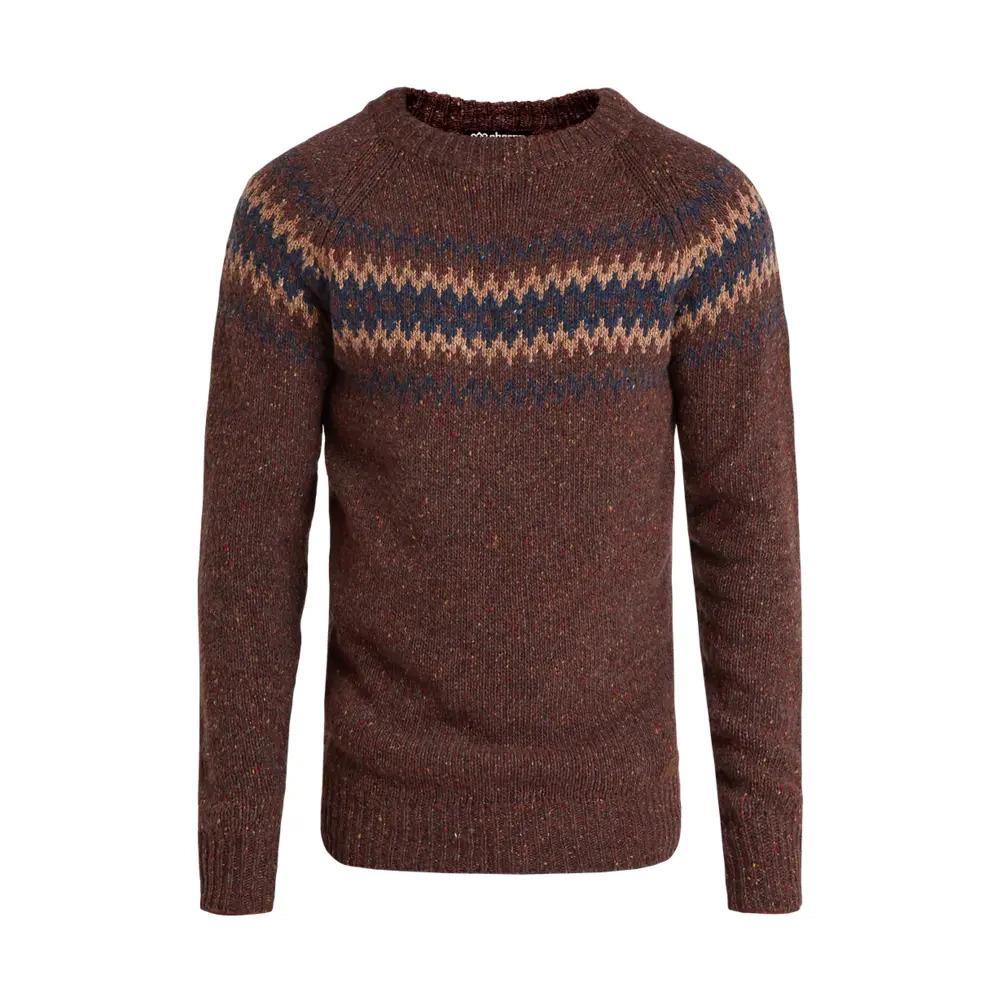The shape of this sweater is inspired by the Sweaters worn on the first Everest expedition, using extrafine merino and alpaca wool for the ultimate combination of soft comfort and technical moisture management. Merino wool is warm without added weight, and is naturally antimicrobial. This crew features a Nepalese-inspired design on the front and has ribbed collar, cuffs and hem.