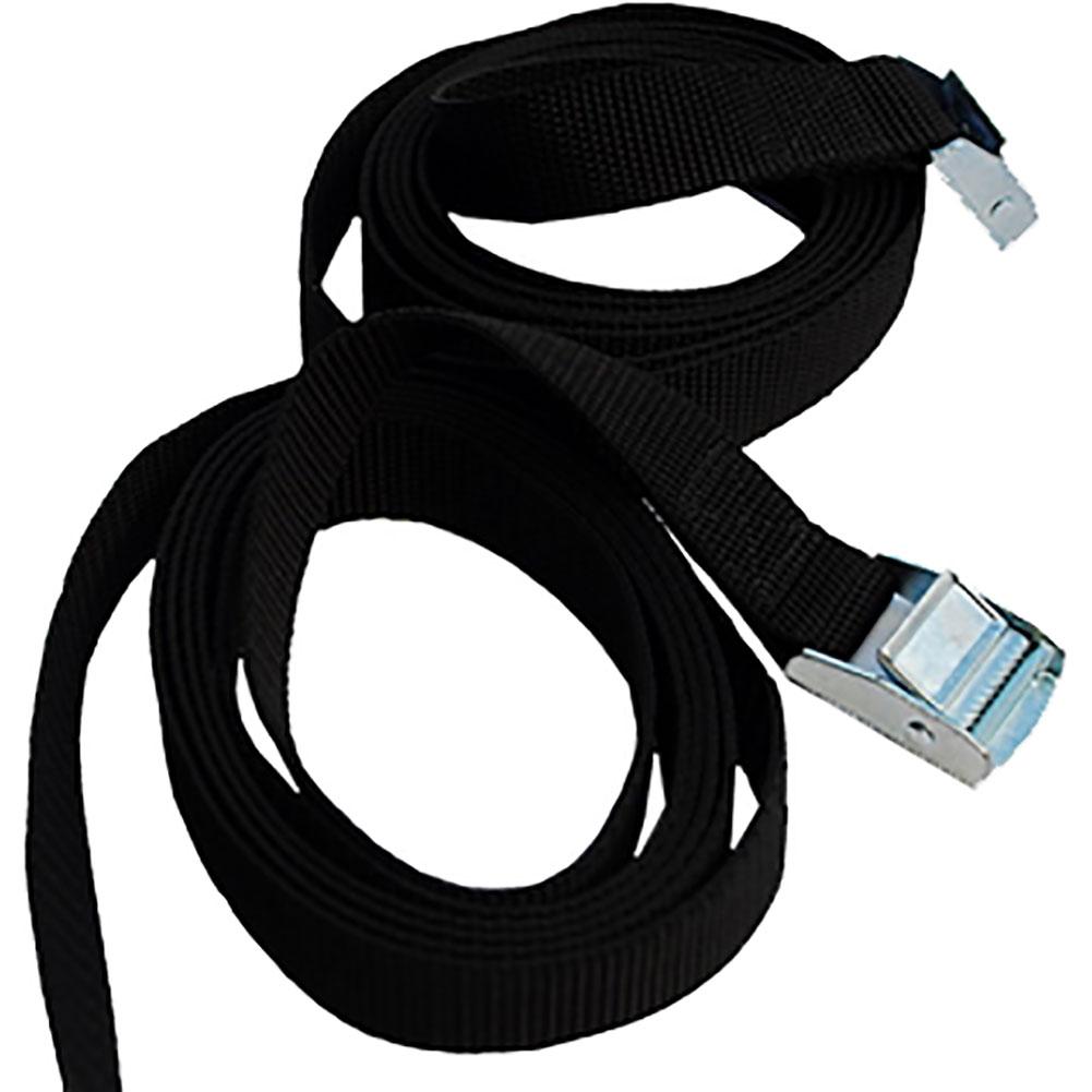 - Comes with two 1" x 84" long polypropylene webbing straps with a metal tightening buckle