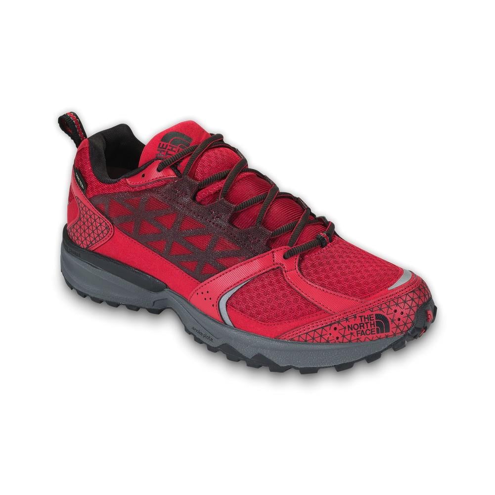 Tackle any terrain in these lightweight, waterproof running The North Face shoes made of breathable GORE-TEX® membrane. They offer protection thanks to Snake Plate technology, which reduces stone bruising while retaining the shoes' flexibility. Providing stability, these shoes are engineered for an improved midfoot fit. A neutral, low-profile midsole allows a natural stride turnover. Includes a Tenacious Grip sticky rubber outsole.