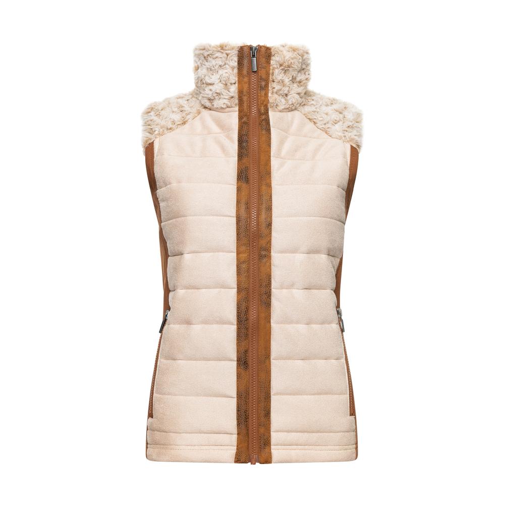 Take to the skies with our ‘Jetset II’ swirl fur vest. It's made from our distressed suede quilting, Ponte side panels for a slimmer fit and ease of movement, finished with exposed zipper pockets.